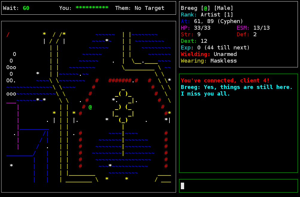 I started MnemonicRL in the summer of 2009. My previous roguelikes were all duds; EmotionRL had a mildly amusing demo that some people actually took the time to beat, and HalloweenRL would later become Rigor Mortis Online, an unrelated game. However, it only took about three months to release a multiplayer roguelike. The trailer caught attention, and the debates about permadeath in a non-MMORPG MMORPG on rgrd began. Meanwhile, August arrived, and I suddenly had to concentrate on life again.
